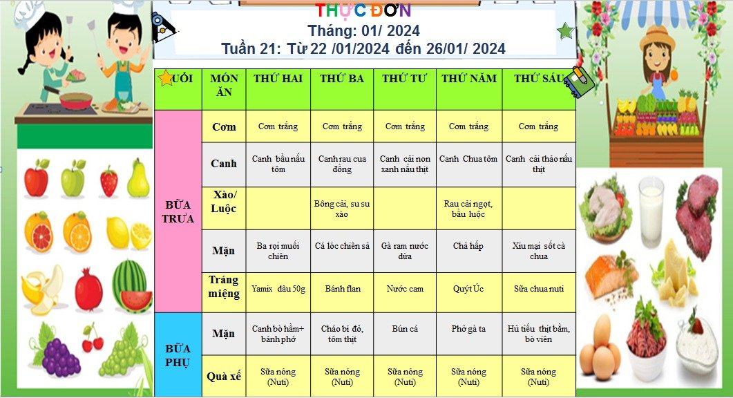 • THỰC ĐƠN THÁNG 1/2024