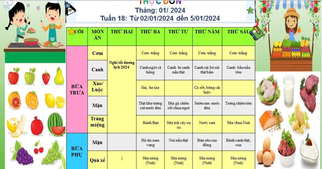 THỰC ĐƠN THÁNG 1/2024